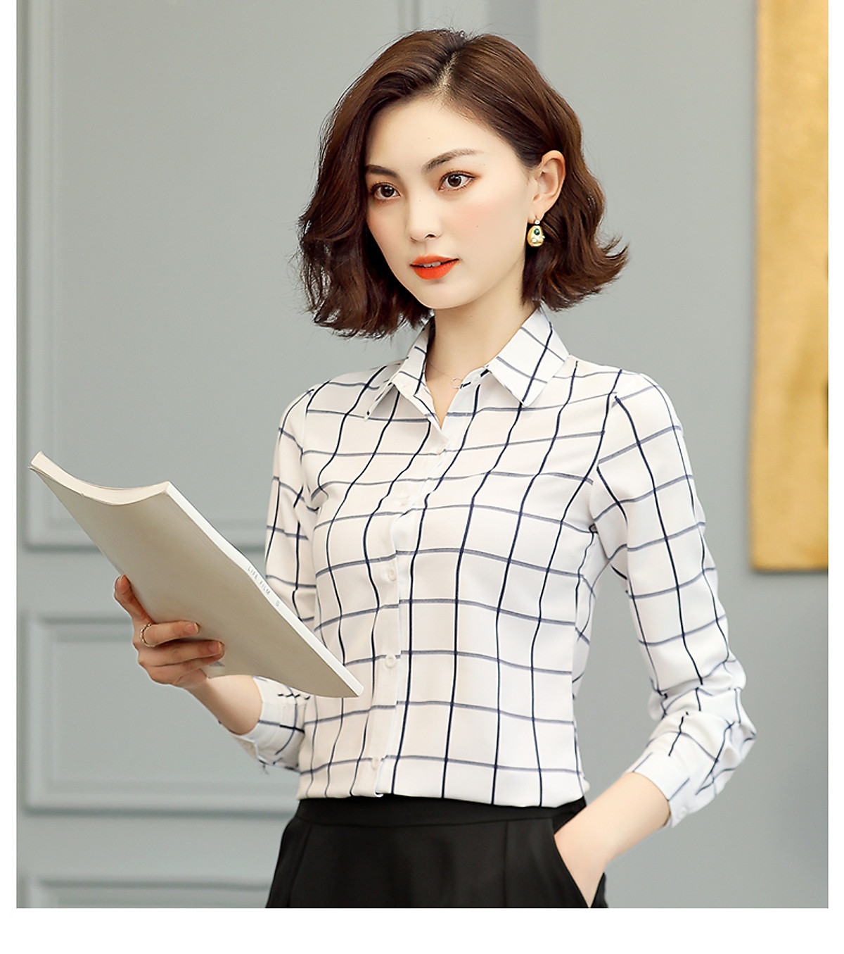 -Sơ mi nữ được thiết kế thanh nhã với kiểu áo form rộng trẻ trung