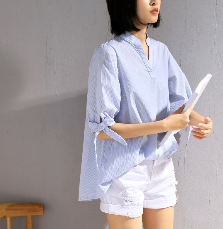 --------------- CHI TIẾT SẢN PHẨM ✿ Sản phẩm : Áo sơ mi mùa hè kiểu dáng thanh lịch, trẻ trung Asley Miều Est.2013 ✿ Chất liệu : Cotton ✿ Màu sắc : SỌC XANH ✿