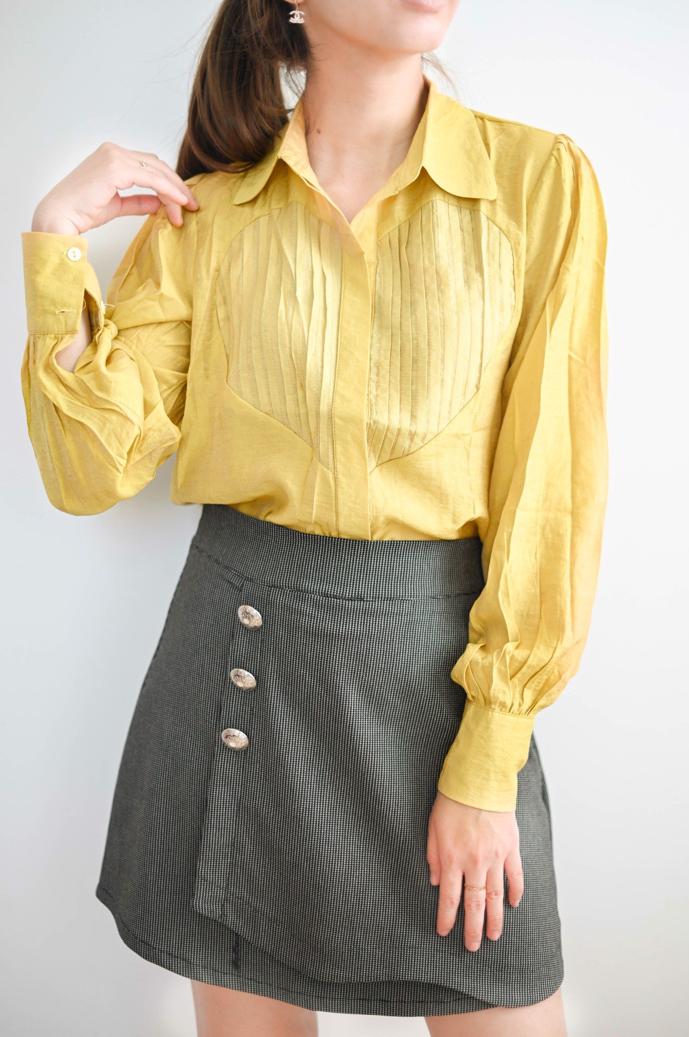 Mua tại TiktokÁo sơ mi nữ tay dài với thiết kế đơn giản, điểm nhấn ở áo là phần xếp li trước ngực tạo nên hình trái tim lạ mắt