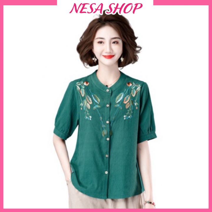 Áo sơ mi nữ trung niên cao cấp tặng mẹ chất liệu mềm mát form rộng bigsize che khuyết điểm NeSa Shop