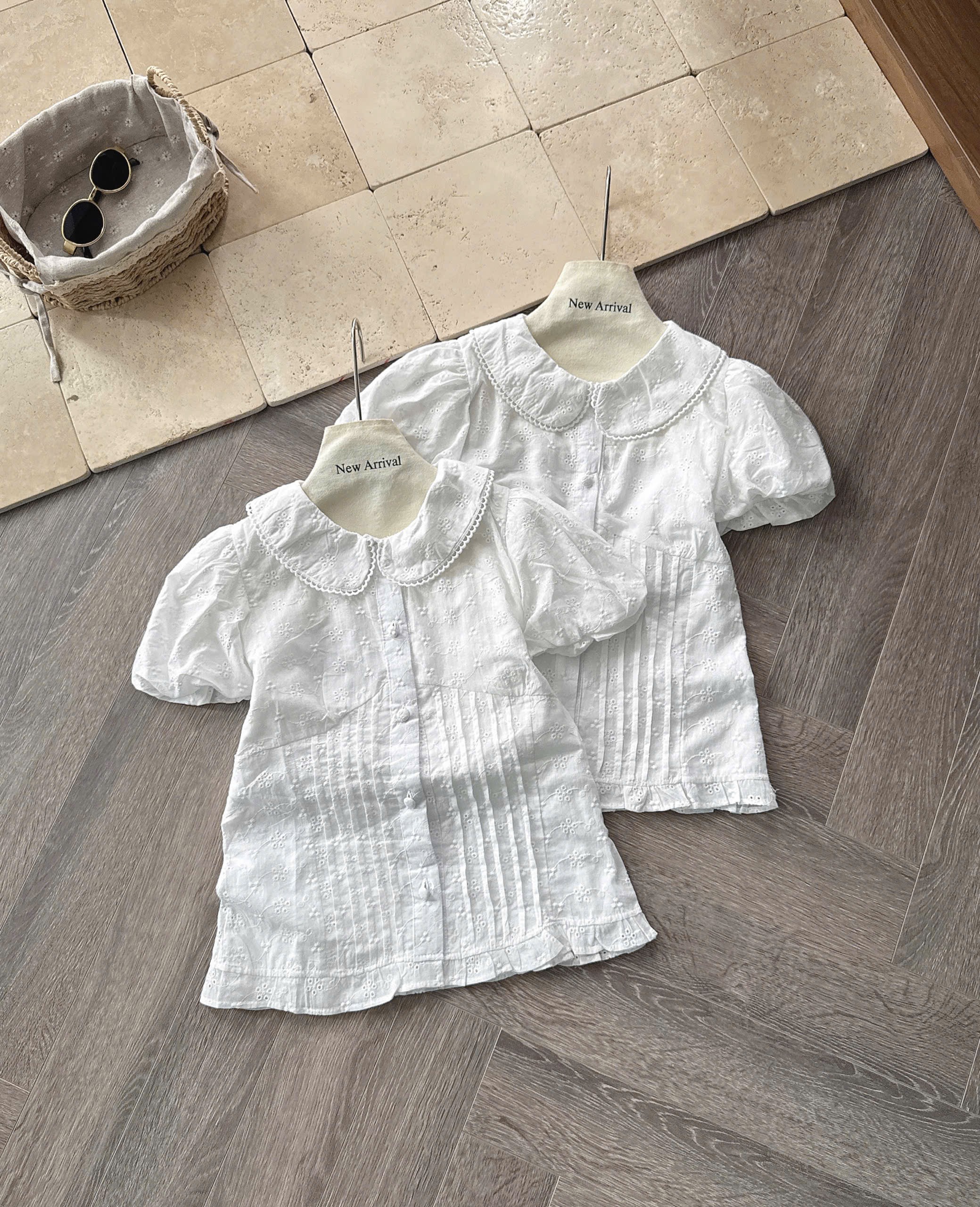 CHI TIẾT SẢN PHẨM - Sản phẩm : Áo sơ mi kiểu tay phồng dễ thương nữ tính thích hợp công sở Garnet Miều Est.2013 - Chất liệu : Xô Ren - Màu sắc :