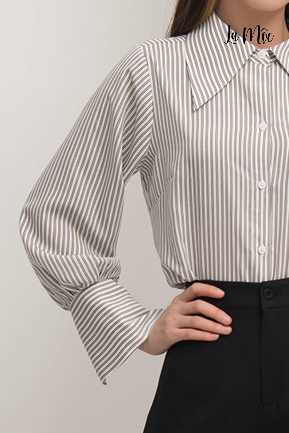 ✨Áo Sơ Mi Sọc Nữ, Tay Phồng Dài Maxivic, La Mộc - LM92128