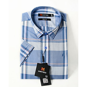 Áo sơ mi nam tay ngắn lai ngang – Khatoco - Mã hàng: A1MN538T2 - Chất liệu: 75% Polyester + 22% Viscose (Bamboo) + 3% Spandex → Vải mềm mại, thoáng mát, co giãn nhẹ,