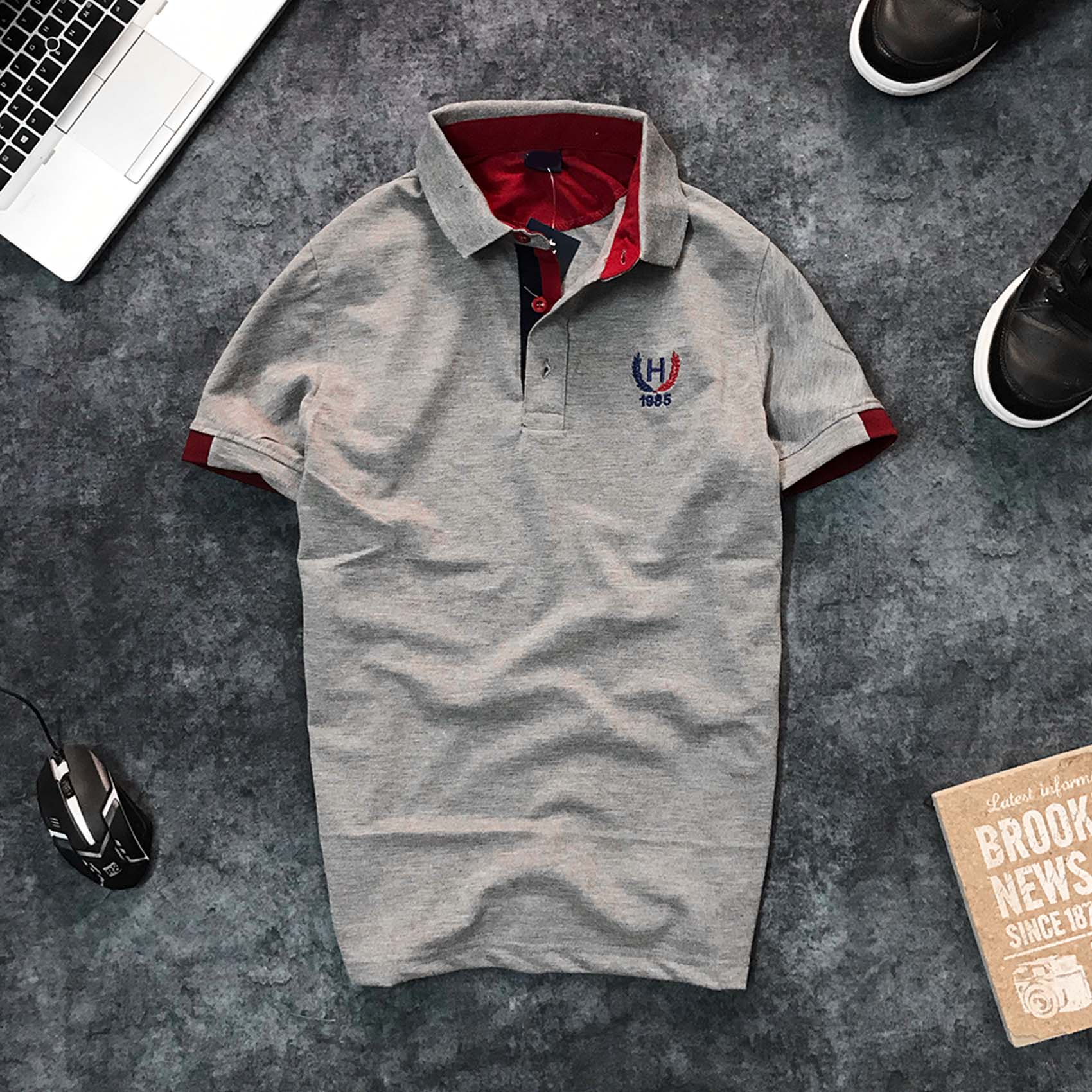 ✨ÁO THUN NAM CỔ BẺ NAM TÍNH THÊU CHỮ H NGỰC TRÁI, CHẤT THUN CÁ SÁU 65/35 THẤM HÚT MỒ HÔI- LZPS046