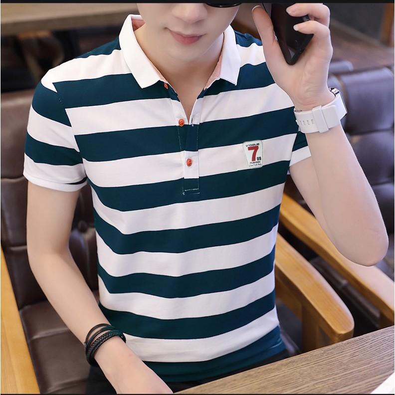 Áo thun nam sọc ngang có cổ cao cấp Seven
