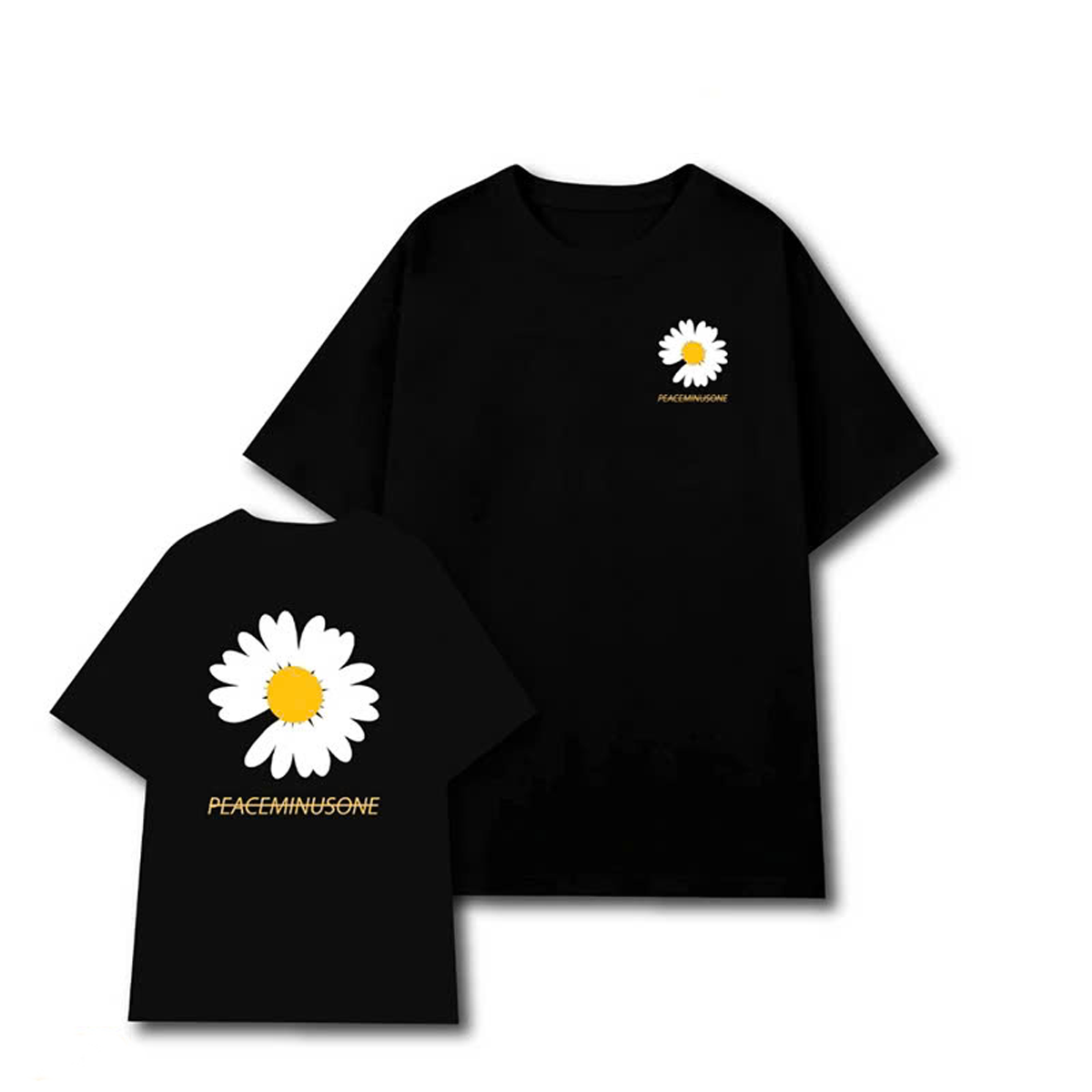 ✨Áo Thun Nữ 100% Cotton Màu Đen In Hoa Cúc Trắng