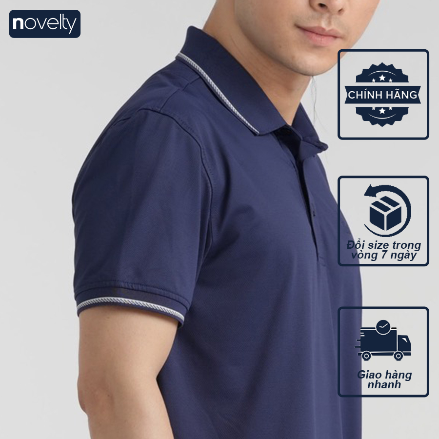 Áo thun nam Polo NOVELTY trơn màu cổ bo 210127N với thiết kế cổ bo dệt trơn có viền sọc mới lạ, đẹp mắt. Chất vải siêu nhẹ, mỏng mát nhưng không kém phần tinh