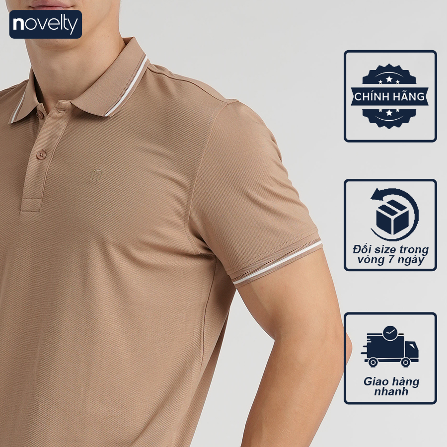 Áo thun nam Polo NOVELTY trơn màu cổ bo 210127N với thiết kế cổ bo dệt trơn có viền sọc mới lạ, đẹp mắt. Chất vải siêu nhẹ, mỏng mát nhưng không kém phần tinh