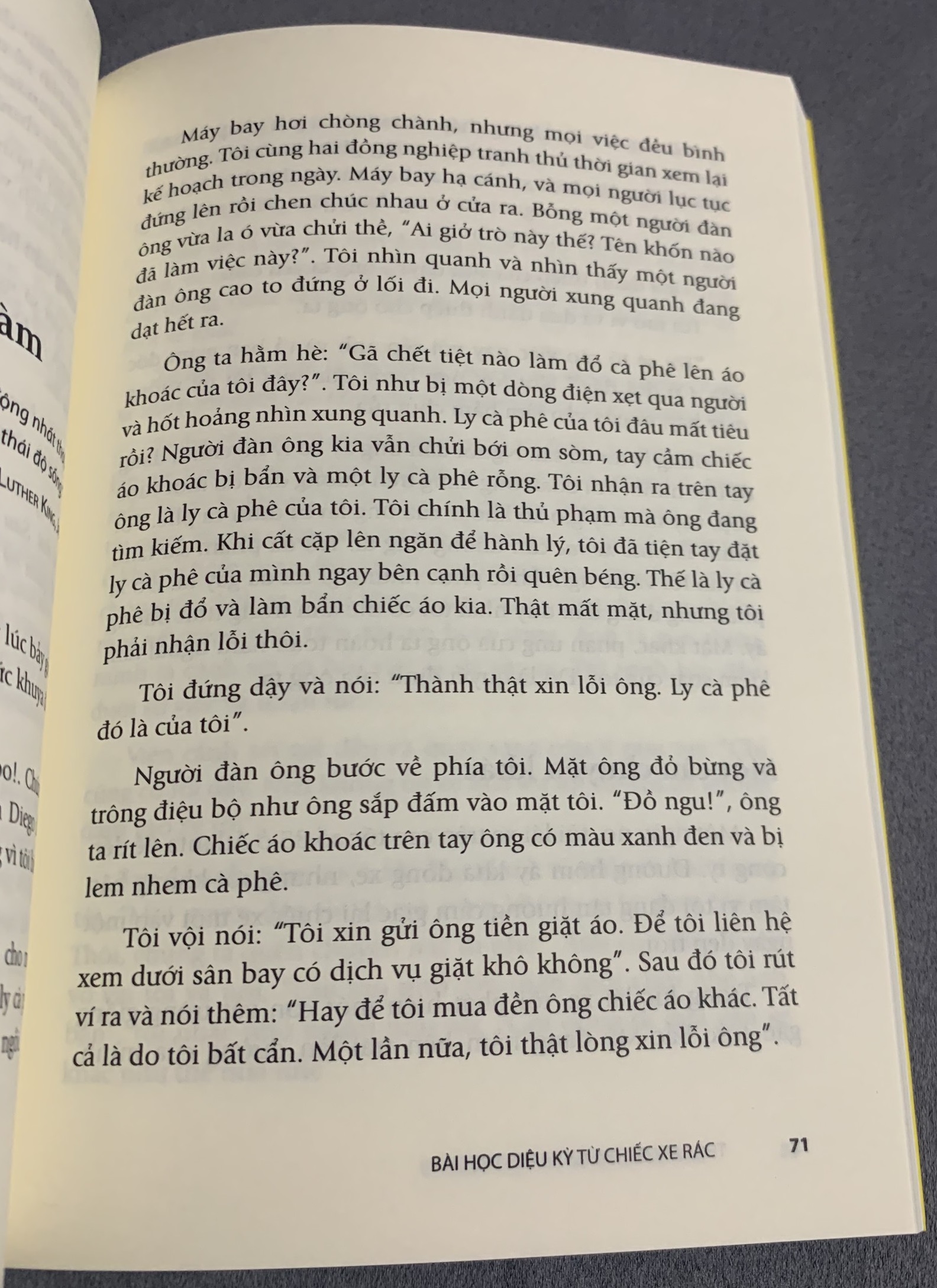 “Có những người giống như “chiếc xe rác” vậy: họ chứa trong mình đầy “rác rưởi” - sự thất vọng, tức giận và chán nản. Và tất nhiên, họ phải tìm chỗ để trút bỏ mớ rác rưởi đó. Nếu thấy họ trút lên bạn thì bạn đừng đón nhận. Hãy mỉm cười, vẫy chào, chúc họ vui, rồi tiếp tục công việc của mình. Cứ tin tôi đi, rồi bạn sẽ thấy hạnh phúc hơn.”