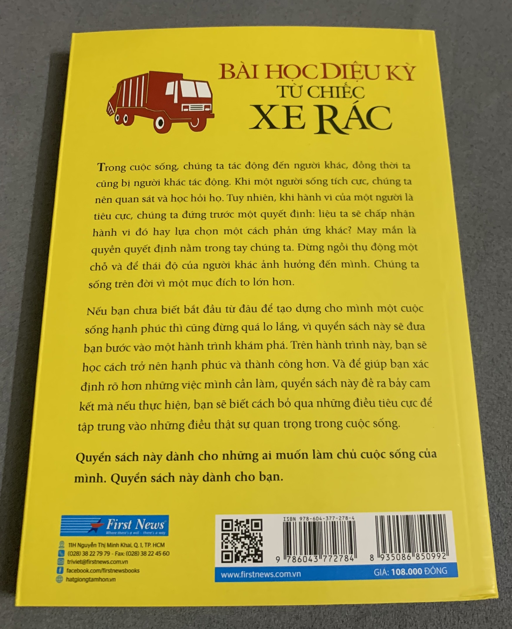Lôi cuốn, sáng tạo, nhẹ ở nội dung và hút ở bìa truyện. Bài học diệu kỳ từ chiếc xe rác quả thật là một cuốn sách gối đầu giường tuyệt vời dành cho những ai đang muốn tìm ra cho mình những giá trị mới mẻ trong cuộc sống. Quyển sách hứa hẹn sẽ mang lại những suy nghĩ, những cái nhìn mới tích cực hơn, yêu đời hơn – bắt đầu từ những câu chuyện không đâu lạ lẫm, những dòng thông điệp ngắn ngủi tưởng chừng như đơn giản lại mang những triết lý hết sức to lớn gửi đến tất cả mọi người.