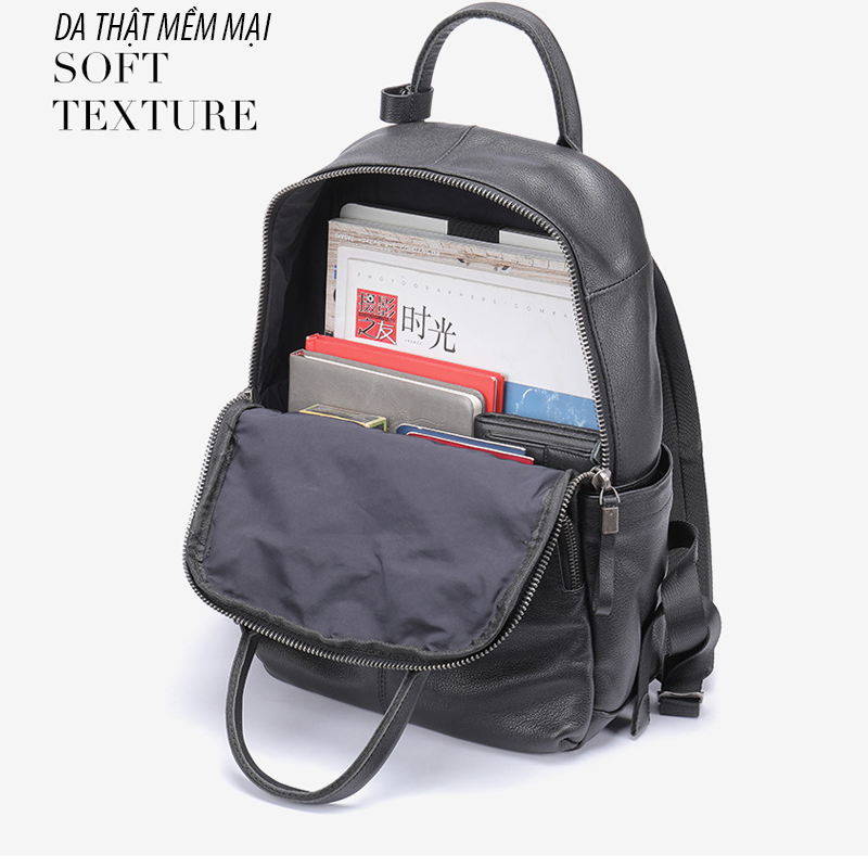 Kích thước : rộng 31cm X cao 43cm X dày 10cm Trọng lượng: 1.1 kg Màu sắc: Nâu, Bò, Đen Phương pháp sản xuất: thủ công Chất liệu : Da BÒ THẬT Chức năng: thoáng khí, chống mài mòn, dễ làm sáng, chống sốc thiết kế : phong cách trẻ trung ,sang trọng, đẳng cấp