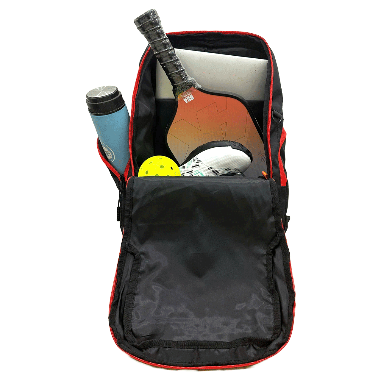 - Hai ngăn khoá kéo bên hông trái và phải cho chai nước, phụ kiện, thẻ xe, ...