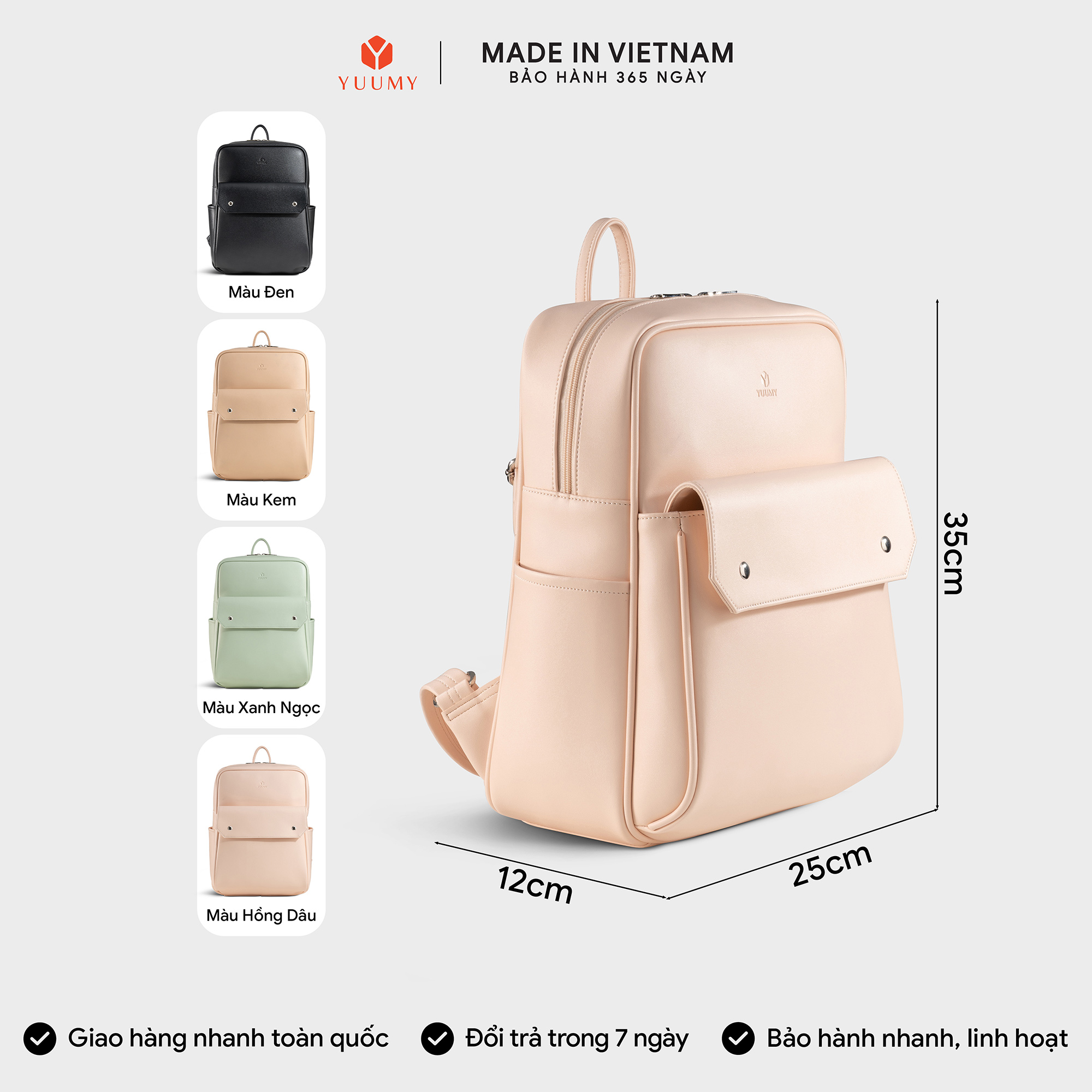 Balo Yuumy Thời trang nữ basic đựng vừa A4 Balo da YBA5