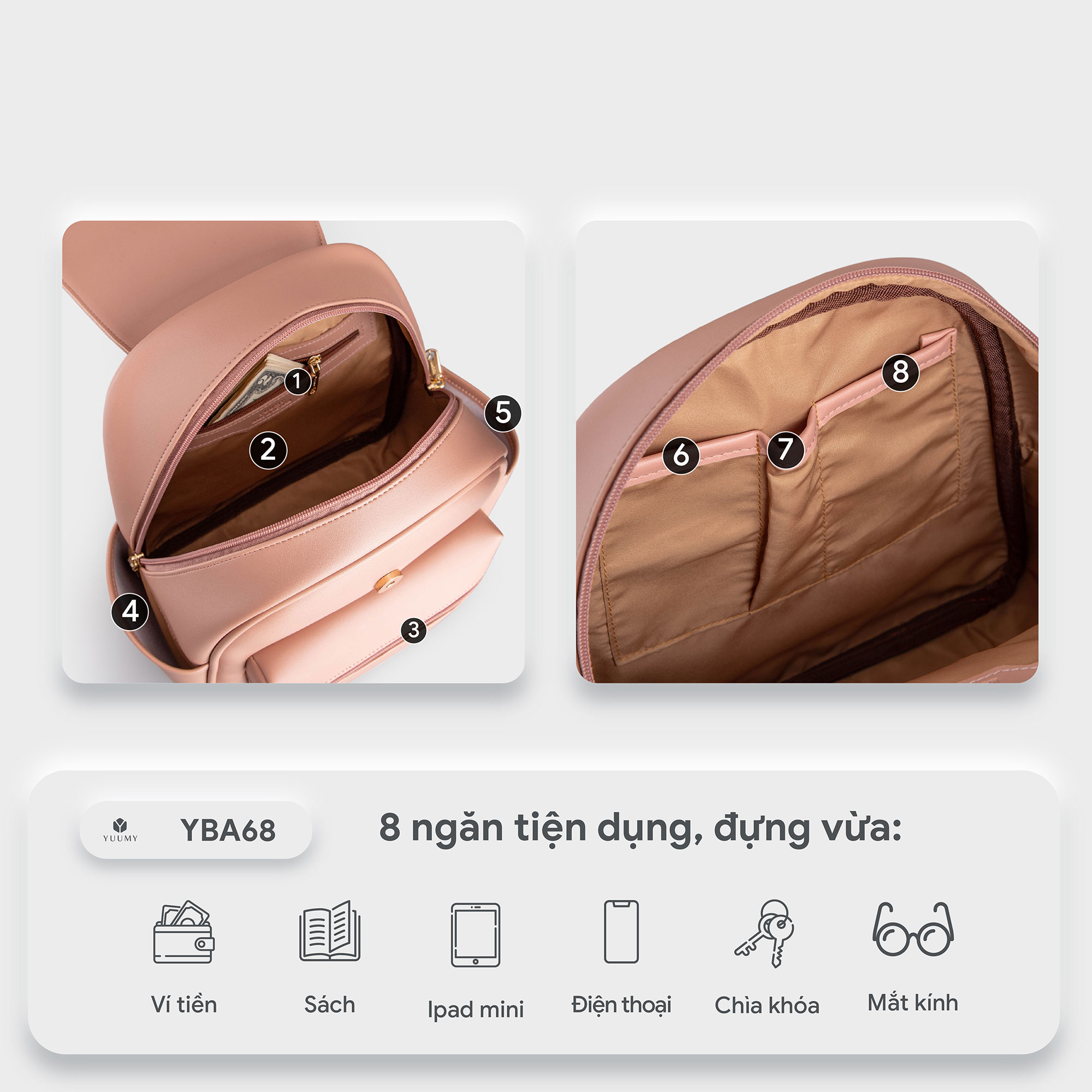 Balo Yuumy Thời trang nữ basic đựng vừa A4 Balo da YBA5