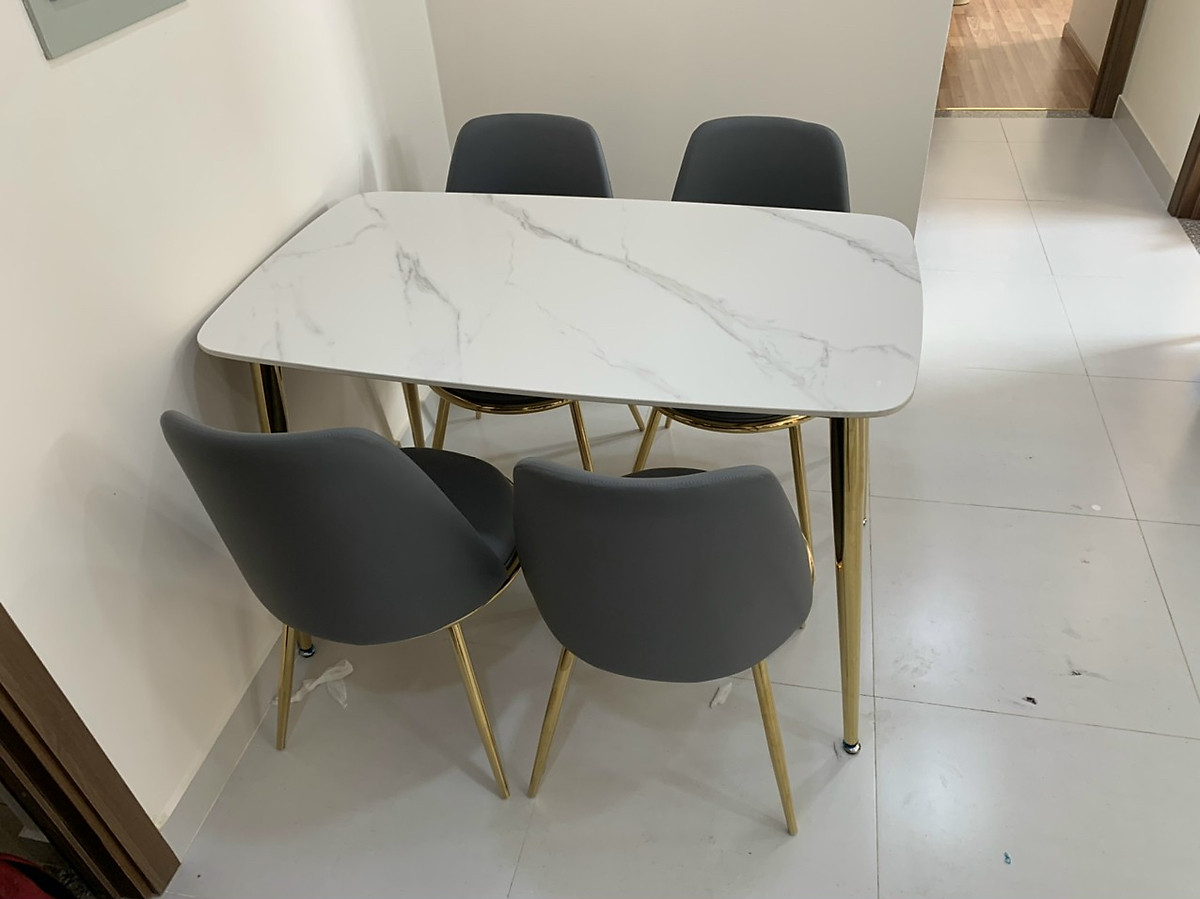 ✨Bàn ăn mặt đá vân mây 4 ghế chân mạ Juno Sofa