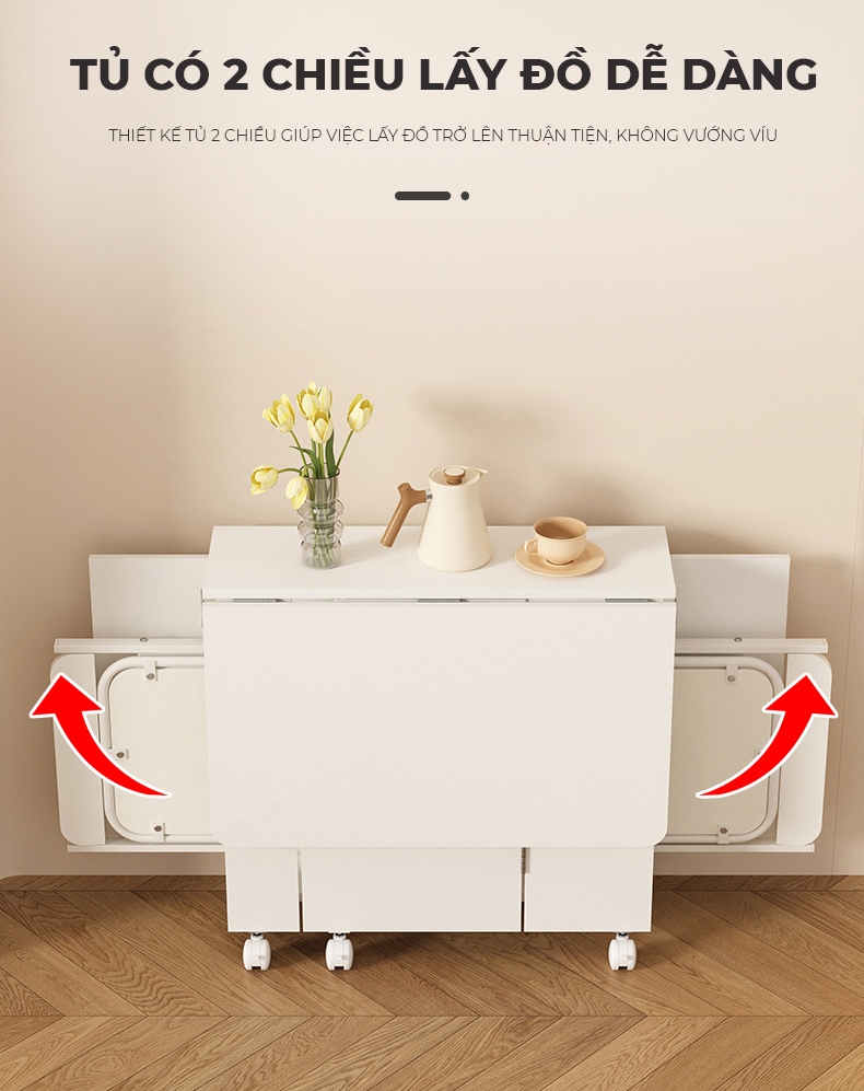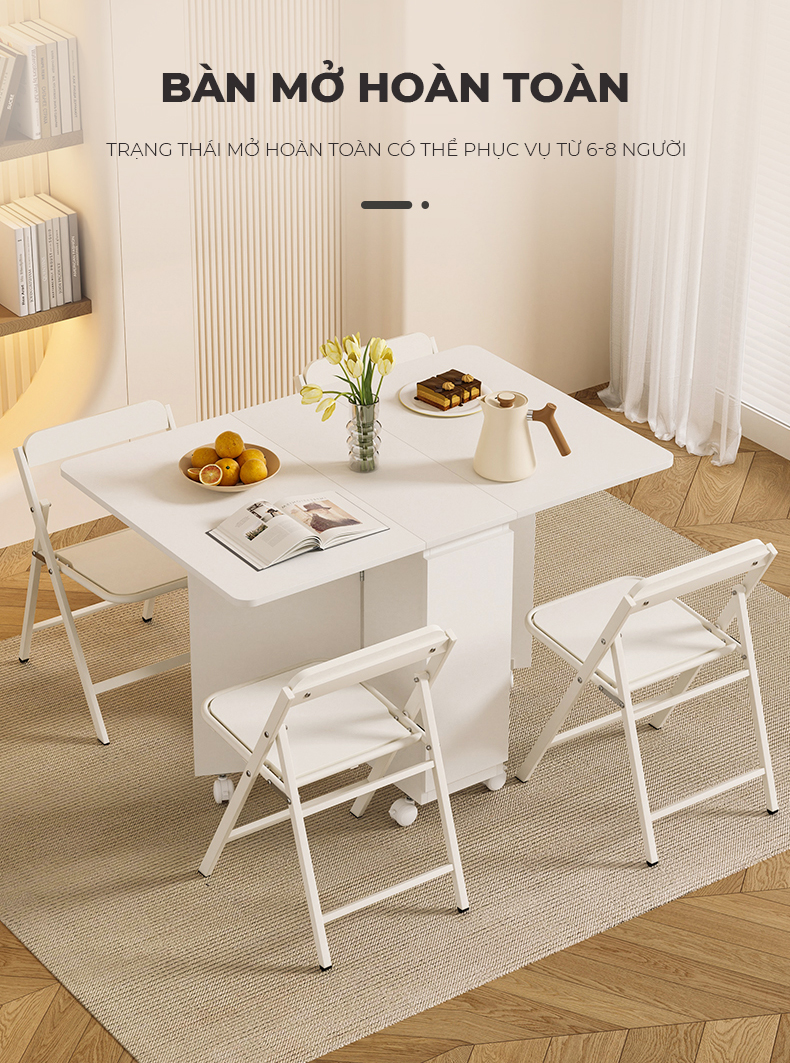 Công năng: Là mẫu bàn ăn thông minh có thiết kế thông minh tiết kiệm diện tích và đa năng. Giúp bạn tối ưu không gian nội thất hiệu quả và đẹp mắt