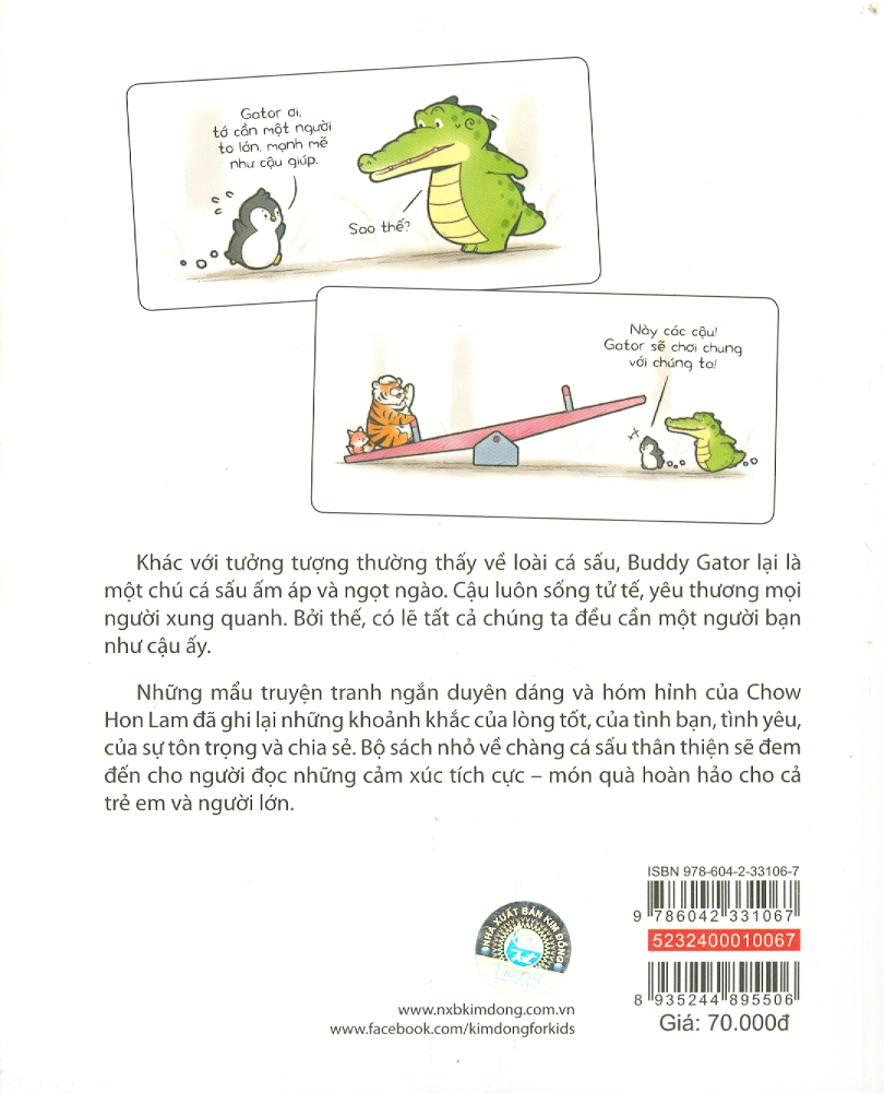 Những mẩu truyện tranh ngắn duyên dáng và hóm hỉnh của Chow Hon Lam đã ghi lại những khoảnh khắc của lòng tốt, của tình bạn, tình yêu, của sự tôn trọng và chia sẻ. Bộ sách nhỏ về chàng cá sấu thân thiện sẽ đem đến cho người đọc những cảm xúc tích cực – món quà hoàn hảo cho cả trẻ em và người lớn.