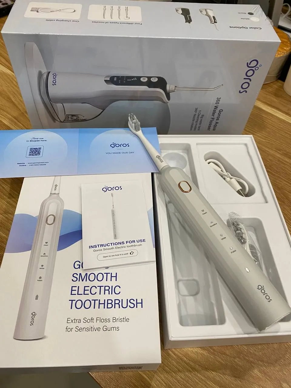 - ĐẶC TRƯNG: [Công nghệ Sonic] Được hỗ trợ bởi một động cơ âm thanh tự phát triển, có tốc độ hơn 38.000 RPM, rung nhanh hơn khoảng mười lần so với bàn chải đánh răng điện thông thường. [4 Chế độ làm sạch & Xếp hạng chống nước IPX7] : Sản phẩm này có 4 chế độ đánh răng khác nhau: chế độ làm sạch, nhạy cảm, làm trắng và đánh bóng, hoàn hảo cho bất kỳ hình thức chăm sóc răng miệng nào bạn cần. Sản phẩm được xếp hạng IPX7, cho phép rửa sạch bằng nước. [Một lần sạc đầy có thể kéo dài tới 6 tháng]: Bàn chải đánh răng điện GOROS Smooth đi kèm với USB type-C, cho phép nó kéo dài tới 6 tháng với một lần sạc trong 5 giờ. Nói lời tạm biệt với nhu cầu sạc khó chịu. [Sợi nano siêu mềm] : Được thiết kế dành riêng cho người dùng có răng và nướu nhạy cảm, tránh làm tổn thương men răng & kích ứng nướu, thích hợp cho cả răng nhạy cảm, người mới dùng bàn chải điện lần đầu. Loại: Sóng âm Dung tích bình chứa (đối với tăm nước) Chế độ làm sạch: 4 (Clean, Sensitive, White, Polish) Công nghệ chống nước: IPX7 Đầu tăm nước/ đầu bàn chải đi kèm: 2 đầu bàn chải siêu mềm dành riêng cho răng nhạy cảm Nguồn điện: Cắm sạc Tính năng: