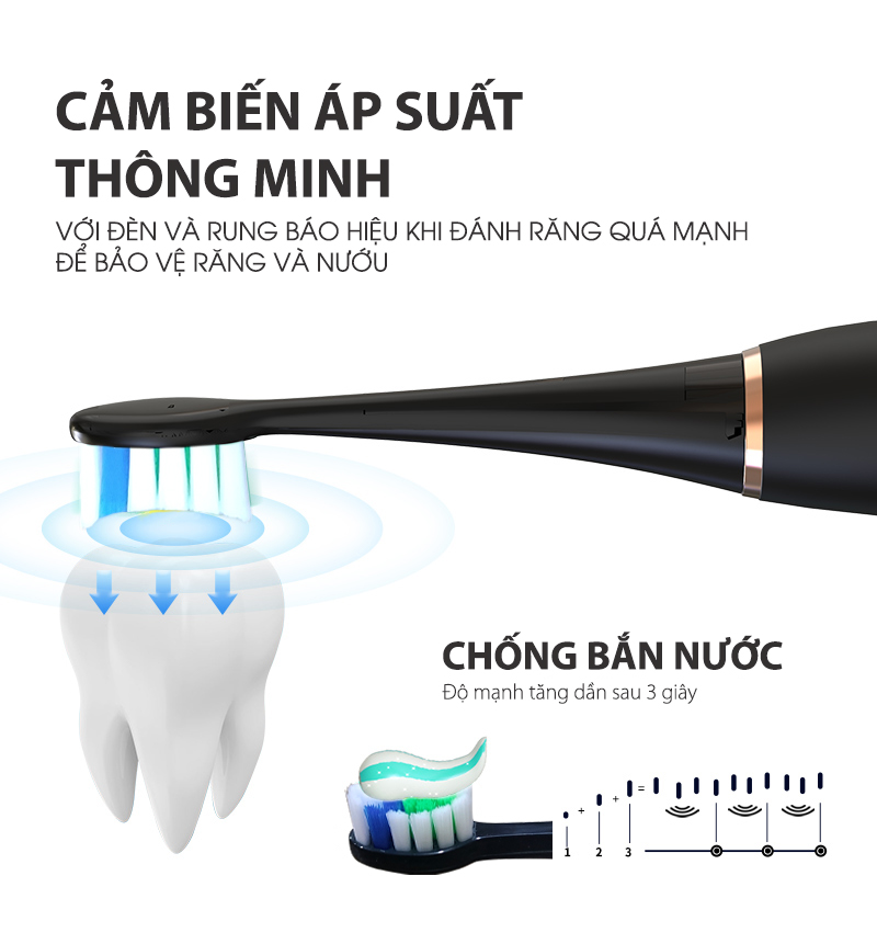 • Cảm biến nâng cấp: Cường độ tăng dần trong 3 giây, chống bắn nước và mang lại trải nghiệm thoải mái khi dùng.