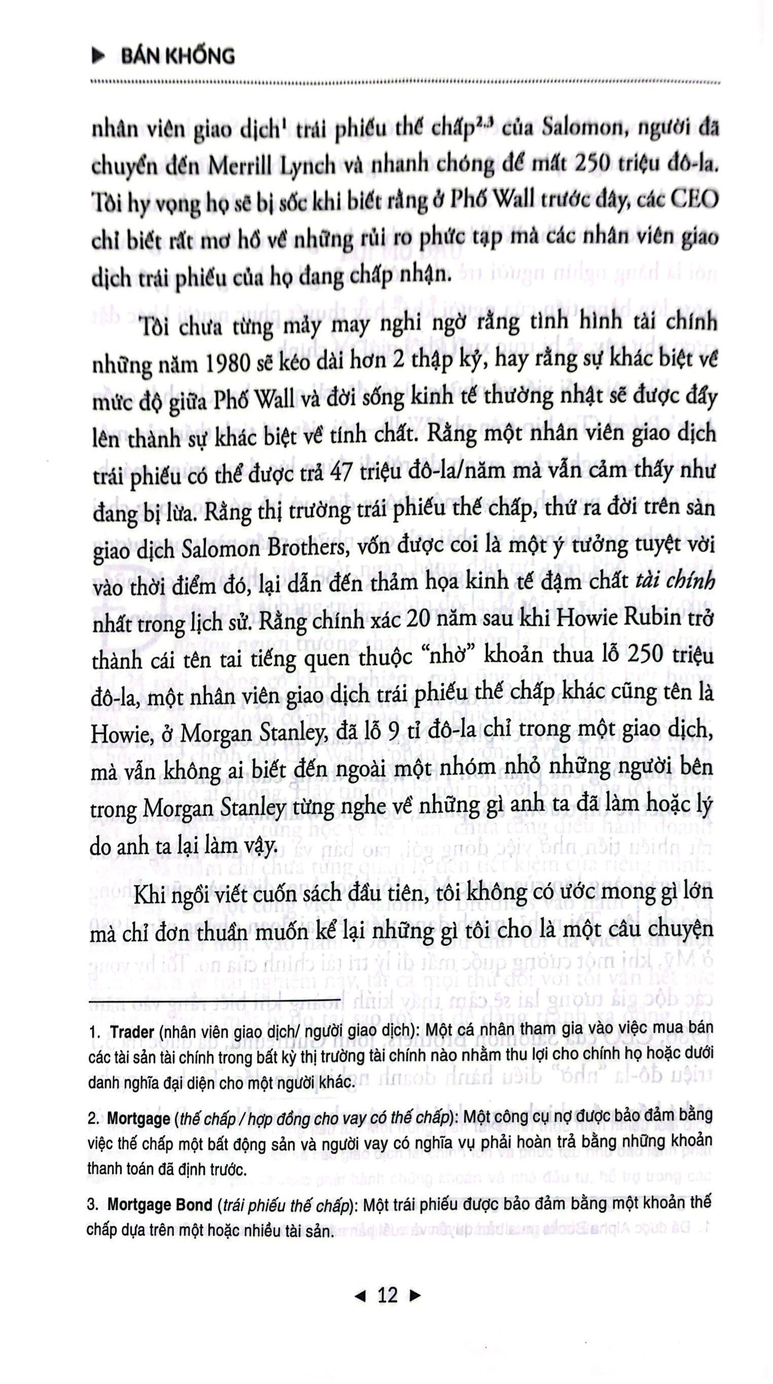 Từ một nhúm những gã chẳng lấy gì làm anh hùng cho lắm ấy, Michael Lewis, tác giả cuốn sách từng đứng đầu trong danh sách New York Times Best-sellers, Trò bịp trên phố Wall, đã viết nên một câu chuyện hấp dẫn và khác thường, chẳng kém gì những tác phẩm trước đây của ông, Bán khống - Thảm họa kinh tế đậm chất tài chính nhất trong lịch sử phố Wall. Cuốn sách một lần nữa chứng minh rằng Michael Lewis là phóng viên thời sự tài năng và hài hước hàng đầu hiện nay khi có thể nói về một thảm họa kinh tế với giọng văn cực kì nhẹ nhàng. Câu chuyện “kinh thiên động địa” nơi phồn hoa nhất của thế giới qua cách miêu tả đầy nghệ thuật của Michael Lewis không chỉ đem đến cho bạn những kiến thức quý báu mà còn là một cuốn sách kinh doanh tuyệt vời để giải trí.