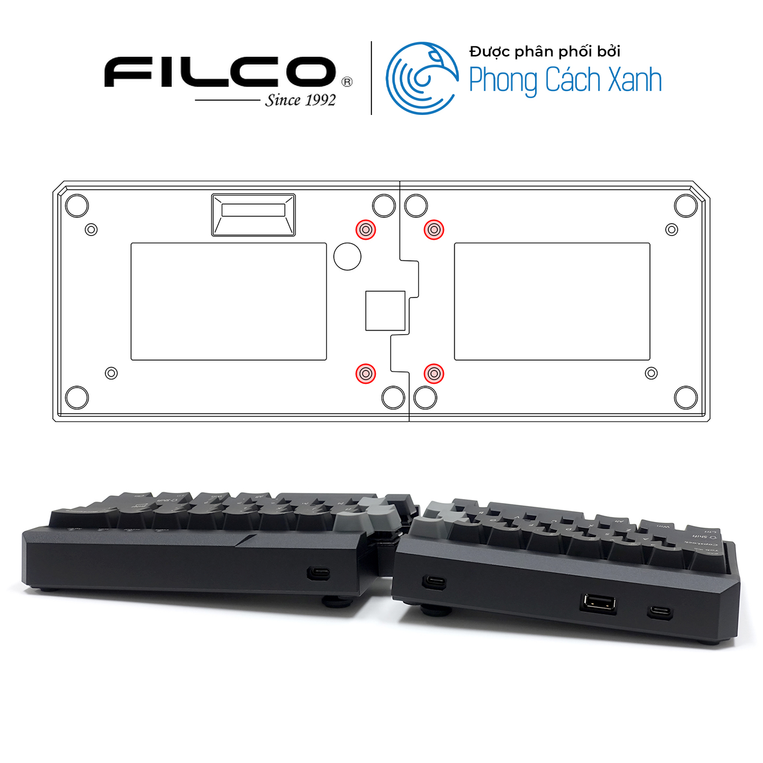 - Bàn phím cơ công thái học nhất từ Filco Nhật Bản Được thiết kế với khả năng tách đôi đặc biệt. Đi kèm 4 chân nâng tự do, bạn có thể setup bàn phím theo nhiều kiểu nâng góc khác nhau tùy theo sở thích gõ phím của bạn như kiểu túp liều, nâng đuôi, nâng đầu. Khi không cần dùng kiểu tách đôi, bạn có thể ghép hai mảnh thành một nhờ vào thiết kế ăn khớp đặc biệt của bàn phím cơ Filco Xacro M10SP.