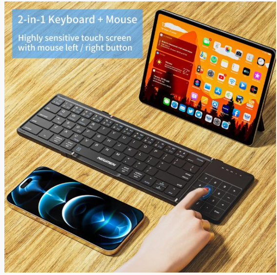 – Sự tiện lợi đỉnh cao trong tầm tay là sự kết hợp hoàn hảo giữa tính di động và hiệu suất làm việc. Sản phẩm được thiết kế gập gọn, dễ dàng mang theo mọi lúc, mọi nơi, phù hợp cho những người thường xuyên di chuyển. Với kết nối Bluetooth không dây ổn định, bàn phím giúp bạn làm việc hiệu quả trên nhiều thiết bị như laptop, máy tính bảng hay điện thoại thông minh. Đặc biệt, bàn phím còn được tích hợp touchpad tiện lợi, giúp thao tác nhanh chóng mà không cần đến chuột rời.