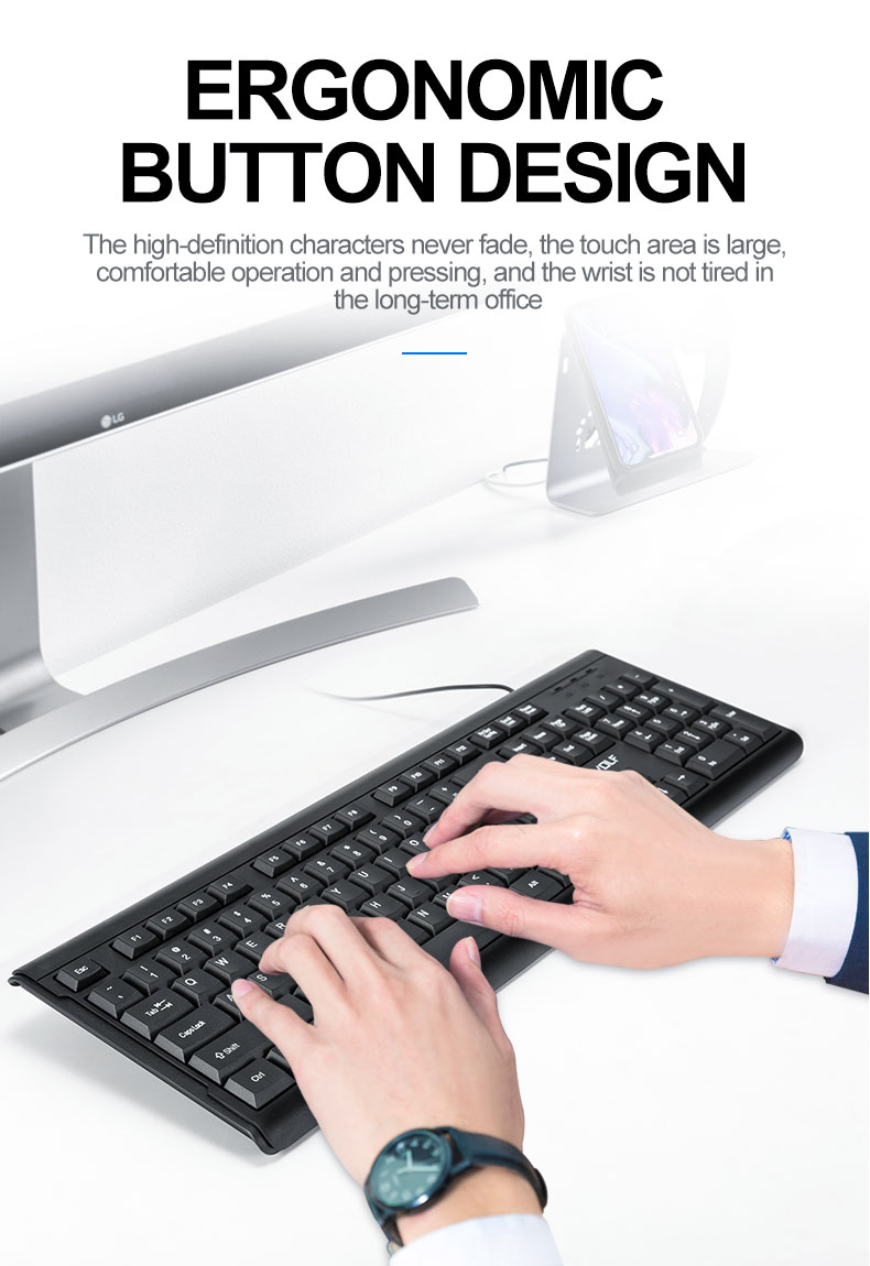 TÍNH NĂNG NỔI BẬT Keycap khắc bằng Laser, chống rỉ nước. Điều chỉnh độ cao. Dây dài 1.5m, độ bền 10 triệu lần gõ. Phù hợp văn phòng. GIỚI THIỆU SẢN PHẨM -Silicon