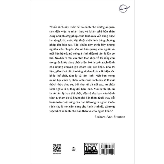 Cuốn sách “Bàn tay ánh sáng” của tác giả Barbara Ann Brennan dành cho những ai quan tâm đến việc tự nhận thức và khám phá bản thân cũng như phương pháp chữa lành mới vốn đang được lan rộng khắp nước Mỹ, thuật chữa lành bằng phương pháp đặt bàn tay. Tác phẩm này trình bày những nghiên cứu chuyên sâu về hào quang con người và mối liên hệ của nó với quá trình đi.ều trị tâm lý lẫn cơ thể. Nó đưa ra một cái nhìn toàn diện về lối sống chú trọng sức khỏe và sự phát triển.