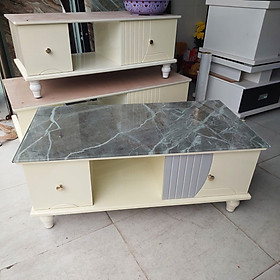 Bàn Trà Sofa Phòng Khách Hình Hộp Chữ Nhật 2 Tầng Mặt Gỗ Vân Cẩm Thạch 100x 50x40 cm (MẪU MỚI)