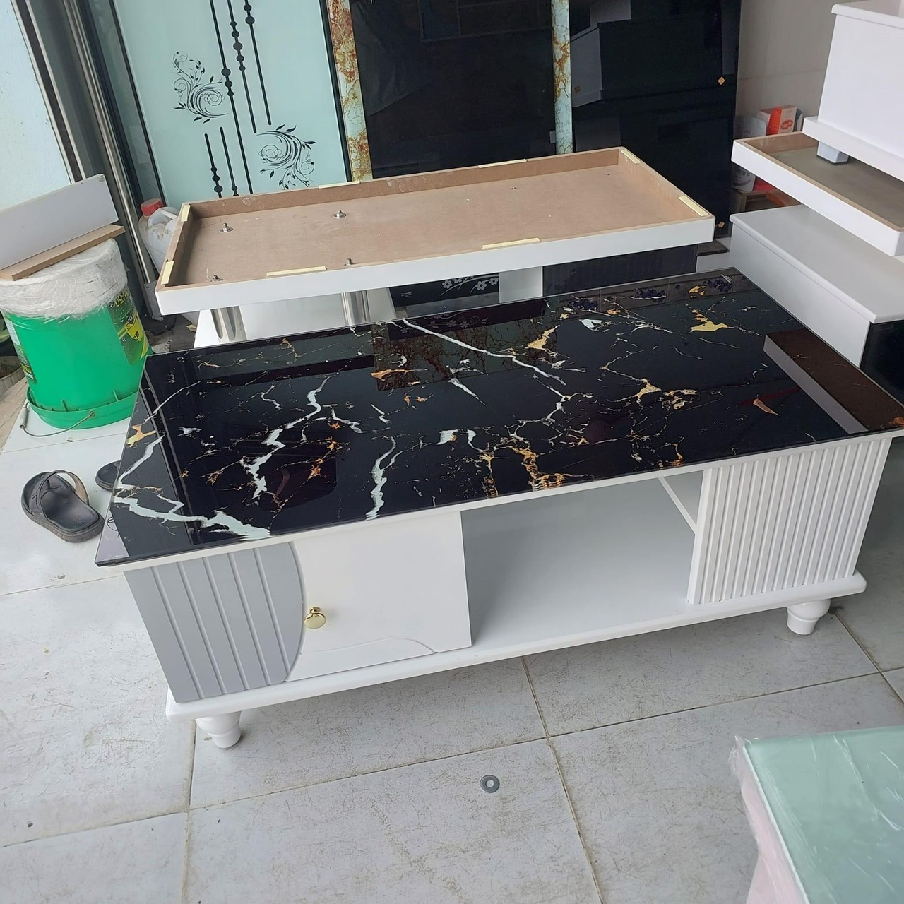 Bàn trà sofa mặt kính dễ lau chùi có hộc và ngăn kéo tiện lợi. Kiểu dáng thiết kế hiện đại phù hợp với nhiều không gian sống khác nhau. Bàn mặt kính kết hợp các mẫu hoa văn tinh tế và lạ mắt tạo nên cảm giác sang trọng và hiện đại hơn cho căn phòng.