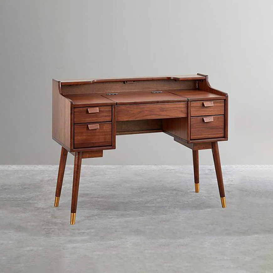 - Mặt bàn: Gỗ cao su + veneer gỗ óc chó bề mặt