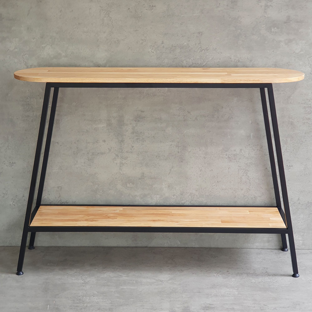 Bàn console trang trí gỗ cao su khung sắt CSTCT047 sử dụng vật liệu chính là gỗ cao su tiêu chuẩn AA dày 17mm được xử lý và hoàn thiện vân màu gỗ tự nhiên