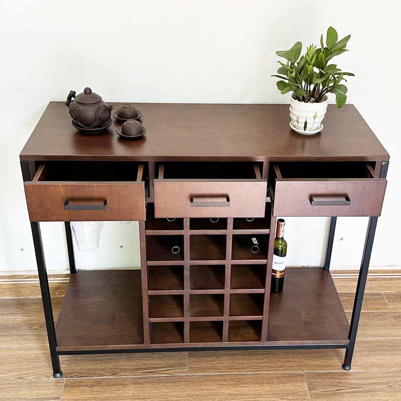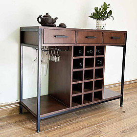 Mua tại TiktokBàn trang trí kết hợp kệ rượu CSTCT050 sở hữu kiểu dáng hiện đại, thiết kế tinh tế thường được sử dụng trong không gian phòng khách hay phòng ăn nhằm tạo điểm nhấn cho không gian thêm hoàn hảo, bàn console có tích hợp các tiện ích khác như có các khay để rượu vang và các tầng treo ly trưng bày các món đồ trang trí yêu thích hay kệ để đồ nhờ trang bị 3 hộc kéo rộng rãi, tối ưu không gian lưu trữ.