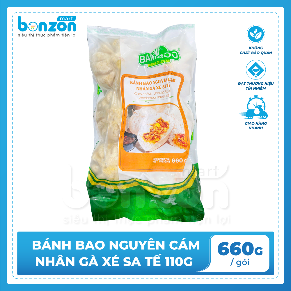 ✨Bánh bao nguyên cám gà xé sa tế bamboo 110g - Bonzon (660g)