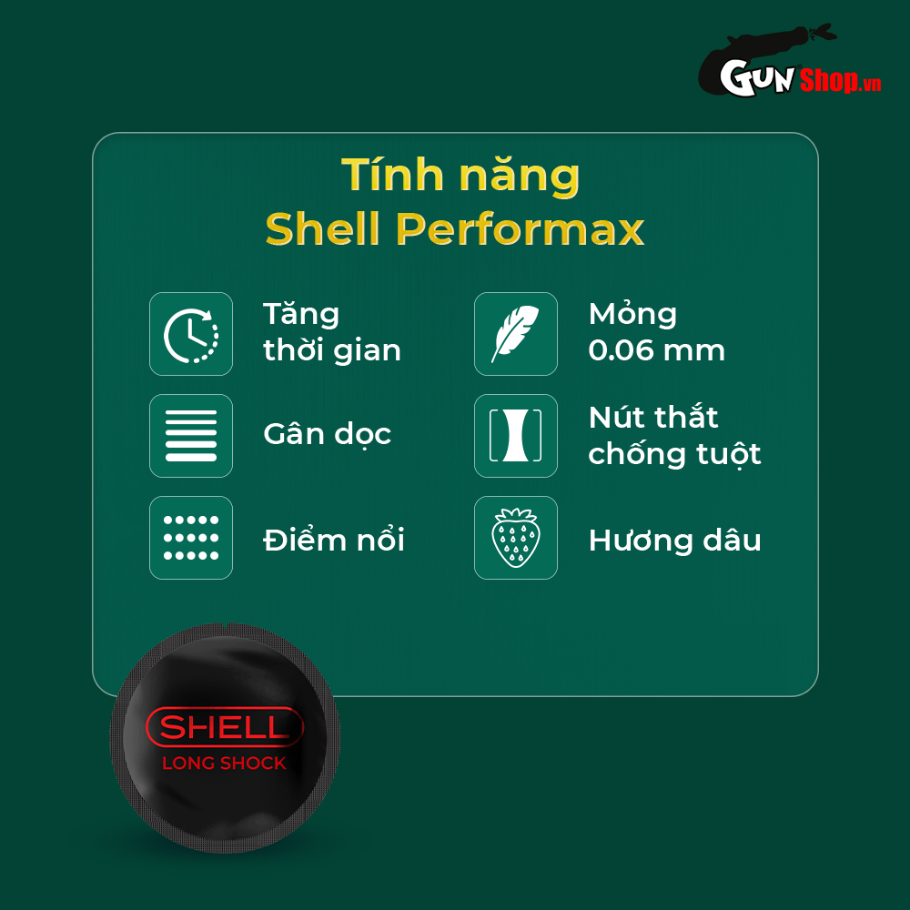 ✪ Quy cách: Mỗi hộp gồm 1 bao nhiều vòng gai, bi nổi lớn và 1 bao Shell Performax