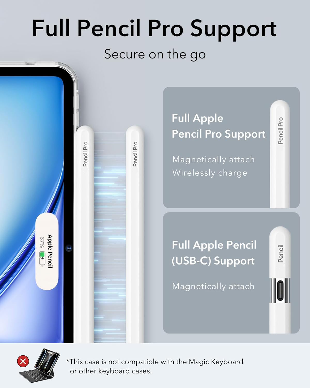 - Tương thích với tất cả các chức năng của Pencil 2 / USB C / Pencil Pro - Chân đế tích hợp để xem rảnh tay dễ dàng - Lớp hấp thụ sốc với