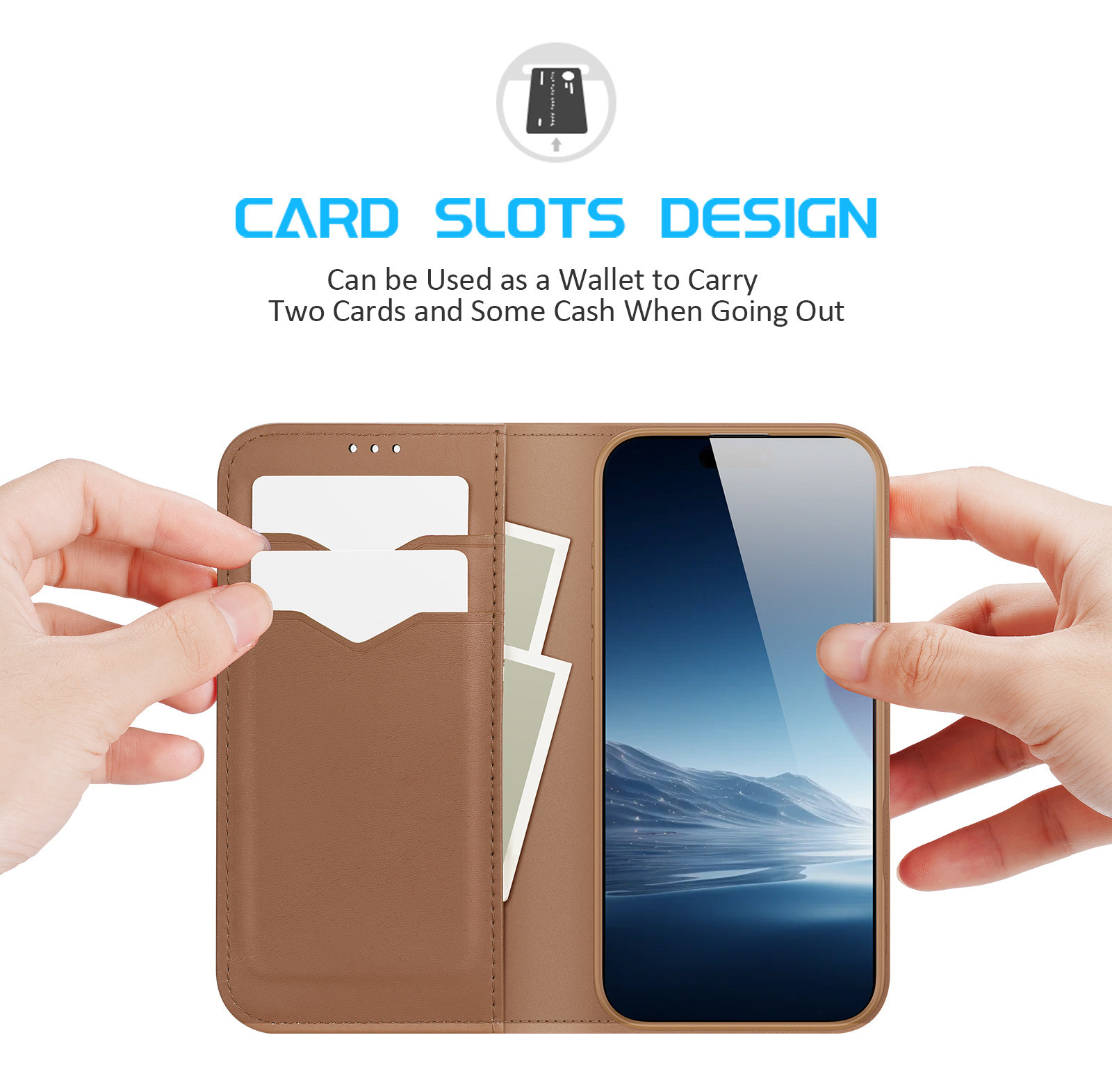 Chất liệu: TPU + PC + Nam châm Mặt sau mờ dày không chỉ chống mài mòn mà còn tạo cảm giác thoải mái khi chạm vào và chống bám vân tay; Có bốn túi