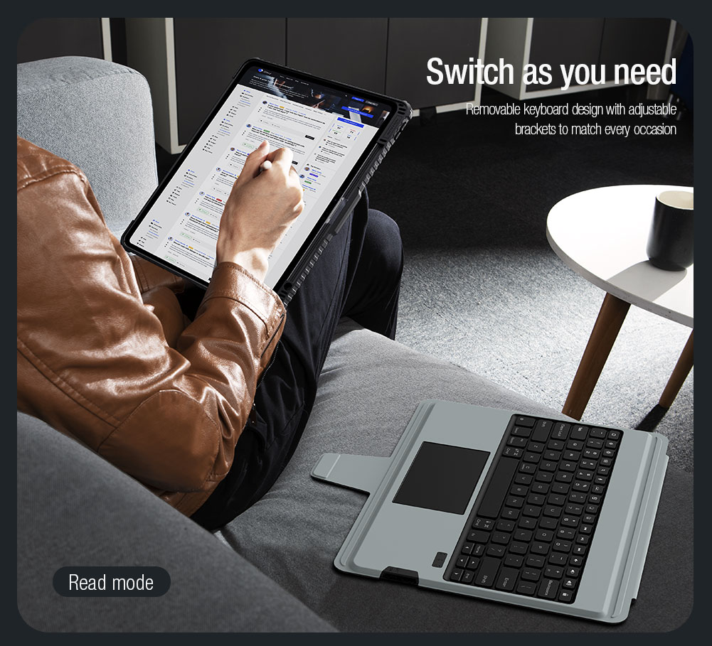 Bao da kèm bàn phím chính hãng Dux Ducis có bàn di chuột TrackPad với chân đế có thể điều chỉnh, bàn phím có thể tháo rời và bàn di chuột thông minh để đánh máy,