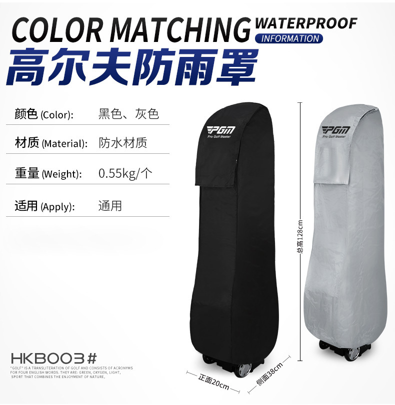 Bao đựng túi golf - PGM HKB003 chính hãng 1. Thông số kỹ thuật: - Mã sản phẩm: HKB003 - Kích thước: 128cm x 38cm x 20cm - Trọng lượng: khoảng 0.55kg - Màu sắc: Đen, Xám 2. Chất liệu: - Bao đựng túi HKB003 làm từ chất liệu Nylon không thấm nước 3. Tính năng: - Bao đựng túi Golf chống mưa, chống bụi, vật liệu chống tĩnh điện giúp bảo vệ tốt túi gậy của bạn dưới tác động của thời tiết. - Hiệu quả cách ly tia cực tím và lọc ánh sáng phản xạ, có thể ngăn chặn tác hại của tia cực tím và kéo dài tuổi thọ của túi gậy. - Túi chất liệu vải Nylon chất lượng cao, chống thấm nước, chống mài mong, bền bỉ. - Túi mềm dễ dàng gấp thu gọn lại khi không sử dụng nữa, dùng được nhiều lần, tiết kiệm chi phí. - Đi kèm 1 túi đựng bảo vệ bao túi tốt hơn. 4. Thông tin chung – PGM là hãng sản xuất chuyên về dụng cụ Golf cung cấp khắp các nước Bắc Mỹ, Trung Á và Đông Nam Á – PGM là thương hiệu lớn tại Trung Quốc. với tiêu chuẩn sản xuất chất lượng châu âu. Và cũng là đơn vị sản xuất cho nhiều thương hiệu nổi tiếng khắp thế giới