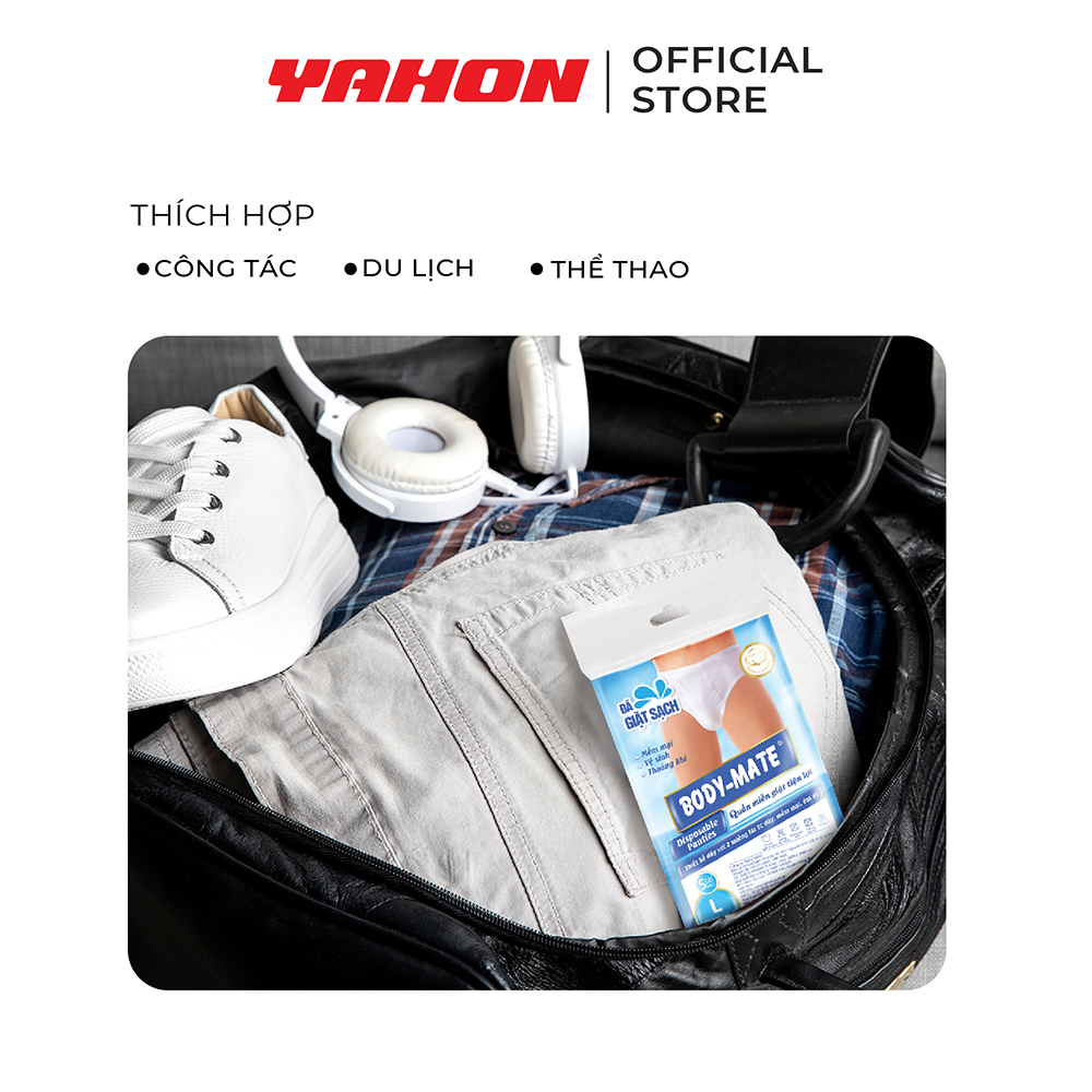 Mua tại TiktokQUẦN LÓT TIỆN LỢI BODY-MATE NAM Chất liệu TC mềm mại, thấm hút, thoáng khí và vô cùng thoải mái khi mặc. Thiết kế 3D vừa vặn, ôm sát vòng mông, mềm và thấm hút. Sản phẩm đã được giặt sạch, sấy khô trước khi đóng gói và tái sử dụng sau khi mặc. Có thể sử dụng ngay khi mở gói. Vô cùng vệ sinh, tiện lợi. Thành phần: Vải TC Quy cách: Size M: Vòng mông: 84-94 cm; 5 cái/bao, 96 bao/thùng Size L: Vòng mông: 92 – 100 cm; 5 cái/bao, 96 bao/thùng Size XL: Vòng mông: 100-112cm; 5 cái/bao, 96 bao/thùng Hạn sử dụng: 3 năm kể từ ngày sản xuất NSX: in trên bao bì
