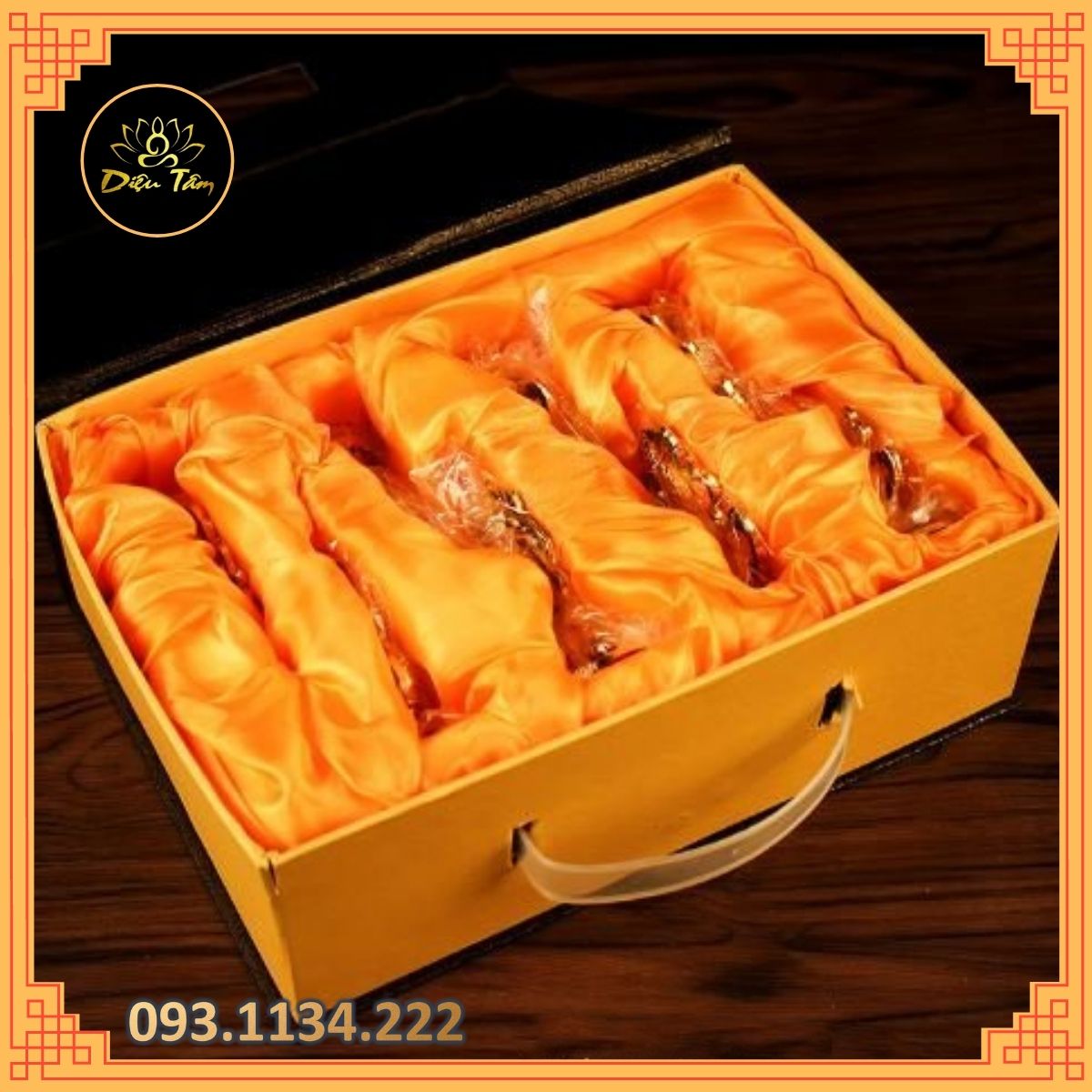 Mua tại TiktokThông Tin sản phẩm: Bát bảo cát tường -Kích thước (D x R x C): size nhỏ: 9.8cm x 6cm x 3.8cm; size to: 17.8cm x 6cm x 3.8cm -Chất liệu: Hợp kim đồng -Ý nghĩa: Bát Bảo Cát Tường là biểu tượng mang ý nghĩa của sự gia trì hoàn hảo, may mắn và phúc lành. Tám pháp khí đại diện cho những sức mạnh tâm linh khác nhau, mang đến cho con người những niềm tin trong cuộc sống, sự hạnh phúc và an lạc. Bát Bảo Cát Tường được coi như trí tuệ bản lai của Đức Phật, là hóa thân của Đức Phật trong những biểu tượng cát tường may mắn để độ trì lợi ích cho chúng sanh.