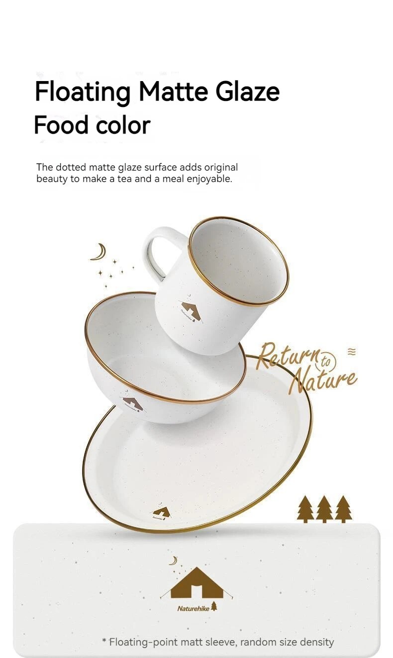 MÔ TẢ SẢN PHẨM BÁT, ĐĨA, CỐC TRÁNG MEN NATUREHIKE CNK2300CW013 Bát, đĩa, cốc tráng men NatureHike CNK2300CW013 kiểu dáng Vintage với họa tiết Camping siêu xinh, lớp men mờ chấm nổi mộc mạc, tự
