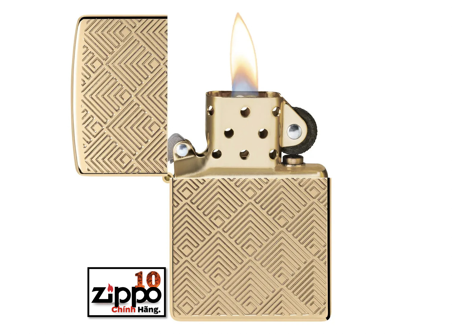 Thiết kế lộng lẫy trên chiếc bật lửa Armor High Polish Brass này tạo nên một vật kỷ niệm tinh xảo và trường tồn với thời gian. Hình khắc phức tạp, sang trọng đạt được với quy trình khắc Deep Carve của Zippo. Được đóng gói trong một hộp đựng dạng quà tặng. Để tối ưu hiệu suất, hãy dùng nhiên liệu bật lửa của Zippo.