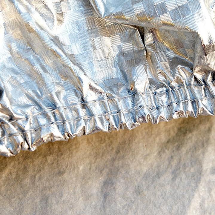 Bạt phủ xe ô tô 7 chỗ 3 lớp tráng nhôm cách nhiệt, chống nóng, chống thấm, chống bụi bẩn - Bạt phủ xe có mặt ngoài là chất liệu vải PEVA tráng nhôm phản