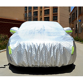 Bạt phủ xe ô tô 7 chỗ 3 lớp tráng nhôm cách nhiệt, chống nóng, chống thấm, chống bụi bẩn - Bạt phủ xe có mặt ngoài là chất liệu vải PEVA tráng nhôm phản