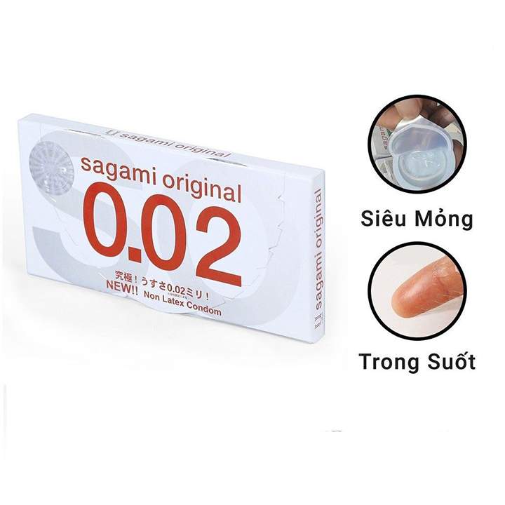 - Bao cao su Sagami Original 0.02 siêu mỏng chỉ 0.02mm, tương đương 1/6 kích cỡ sợi tóc.