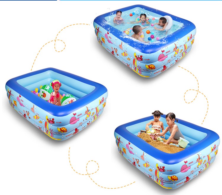 BỂ BƠI CHỮ NHẬT 1,3M 3 TẦNG CHO BÉ Công dụng: Làm Bể bơi, Làm Bể chơi các đồ dưới nước: câu cá, thả vịt cao su, Làm bể chơi: Cát, Đất nặng, Làm Nhà