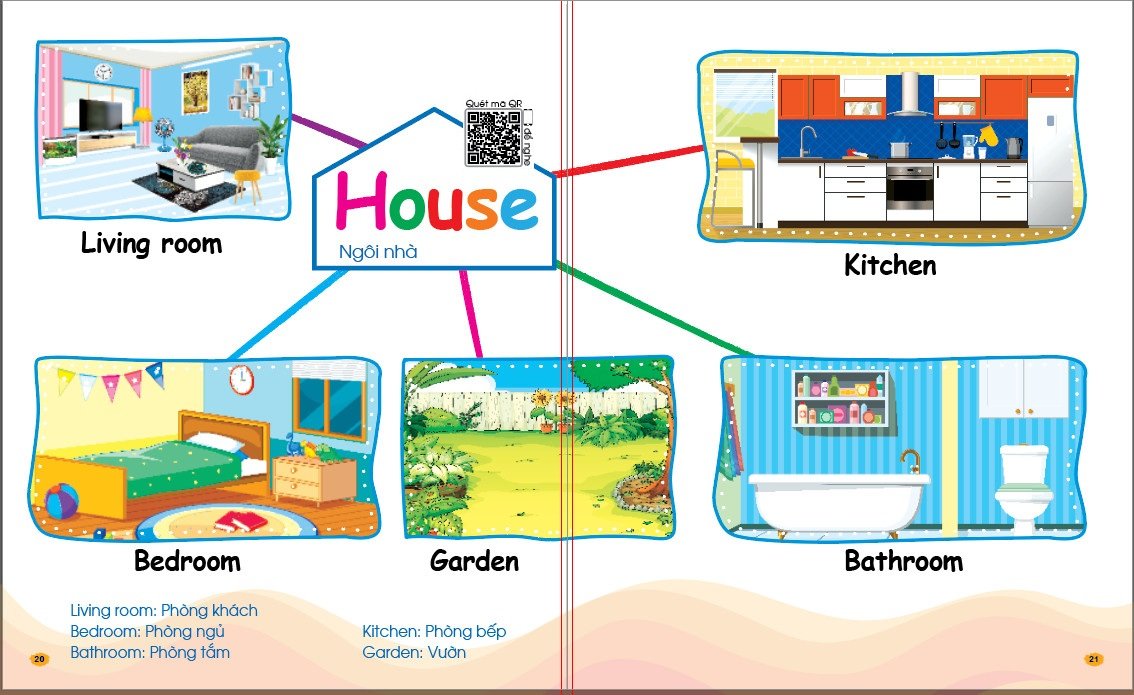 (Dành cho trẻ em từ 2 – 10 tuổi) – TẶNG KÈM FILE ĐỌC TIẾNG ANH GIỌNG CHUẨN BẢN ĐỊA - Quét mã QR trên mỗi chủ đề để nghe nội dung của chủ đề đó.