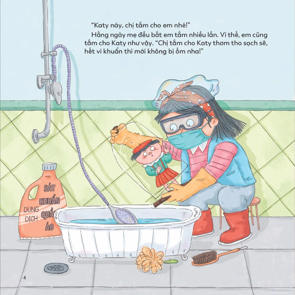 - Mẹ của Gia Hân không thích và cũng không muốn cho em ra ngoài chơi. Mẹ bảo: “Bên ngoài nắng lắm! Vi khuẩn quá nhiều!” Mẹ thấy ở trong nhà là an toàn nhất. Nhưng Gia Hân cũng muốn ra ngoài chơi với búp bê Katy thân yêu, liệu có cách nào không nhỉ? Mời bạn khám phá trong cuốn sách này nhé! Trích đoạn Ưu điểm Nội dung gần gũi, dễ hiểu: Cuốn sách sử dụng ngôn ngữ đơn giản, hình ảnh minh họa sinh động, dễ dàng thu hút sự chú ý của trẻ. Qua câu chuyện của nhân vật Gia Hân, bé sẽ hiểu được tầm quan trọng của việc tăng cường sức đề kháng để có thể thoải mái vui chơi. Kiến thức khoa học, chính xác: Thông tin trong sách được trình bày một cách khoa học, dễ hiểu, giúp trẻ hiểu rõ về hệ miễn dịch, các yếu tố ảnh hưởng đến sức khỏe và các cách để tăng cường sức đề kháng. Thực hành ngay tại nhà: Cuốn sách không chỉ cung cấp kiến thức lý thuyết mà còn đưa ra những gợi ý thực hành cụ thể như chế độ ăn uống lành mạnh, luyện tập thể dục, nghỉ ngơi hợp lý.