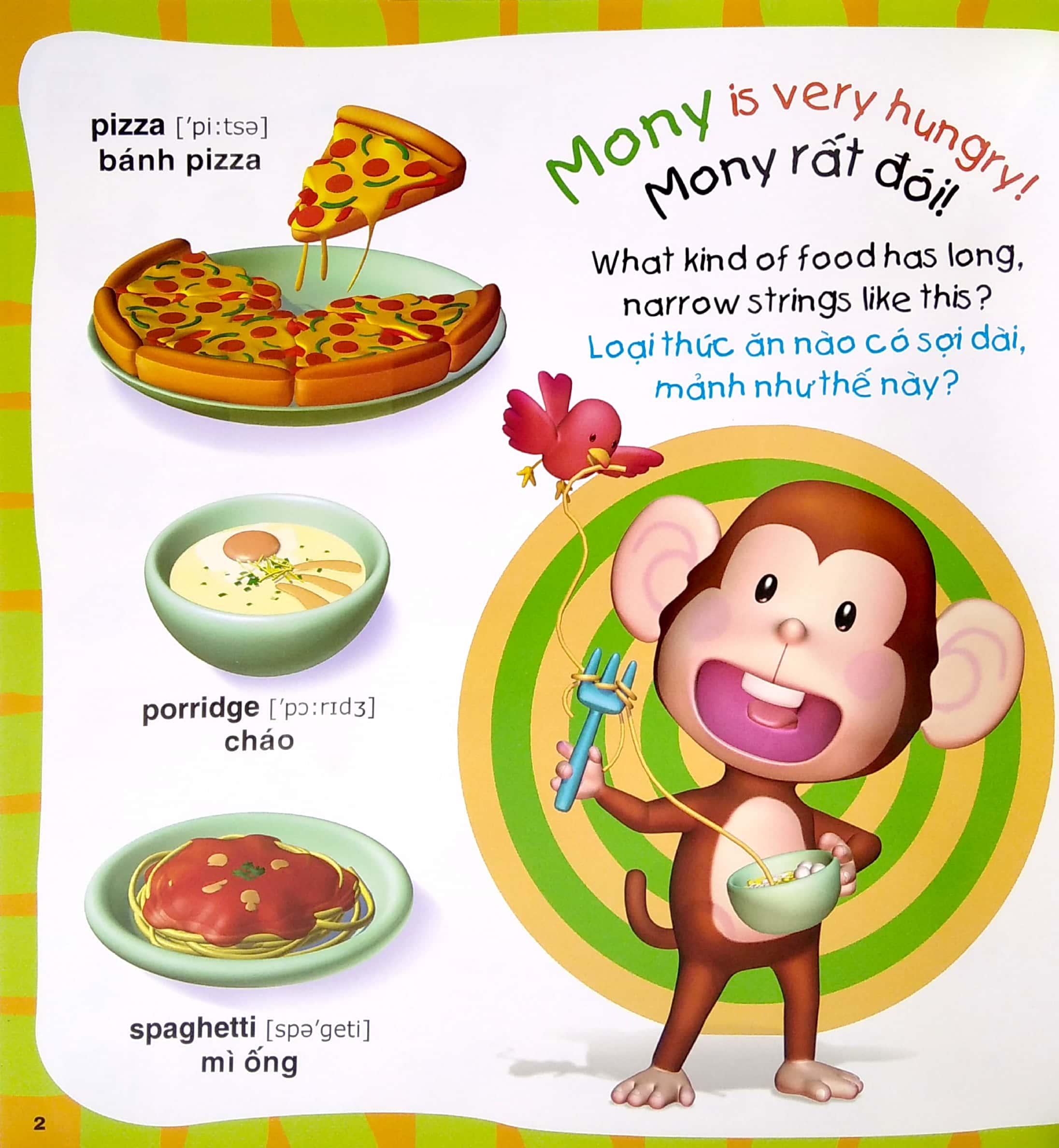 Hai bạn nhỏ Mony và Bunji sẽ giúp các bé làm quen với những từ tiếng Anh chỉ những đồ vật, sự vật quen thuộc trong cuộc sống hằng ngày. Với 128 hình minh họa đẹp, sinh động được chia thành lư nhóm, các bé sẽ dễ dàng nhớ được những từ này. Hãy cùng vui học với những câu hỏi, trò chơi và hình dán thú vị nhé!
